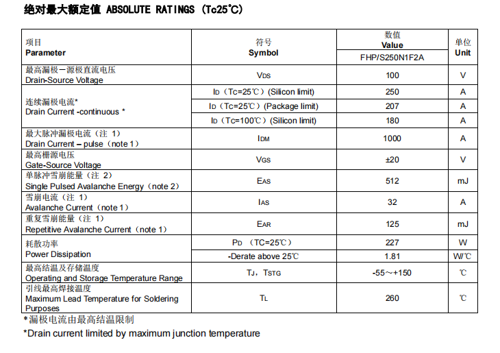 從上述特點(diǎn)可知,這一款工業(yè)級(jí)的250A、100V電流、電壓的FHP250N1F2A場效應(yīng)管型號(hào)參數(shù)是非常適合使用在工頻逆變器的上。